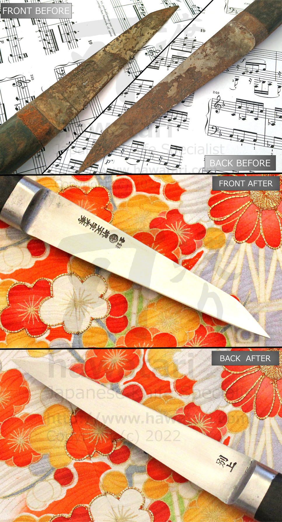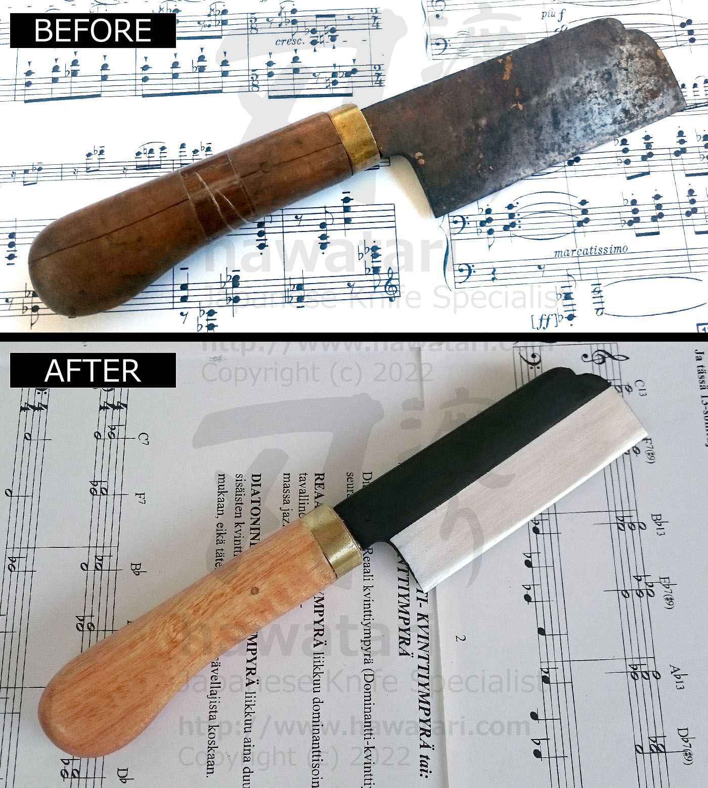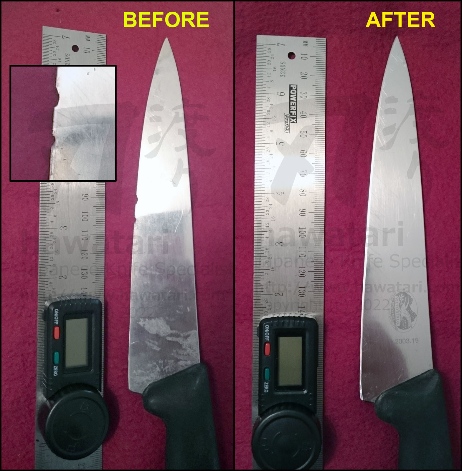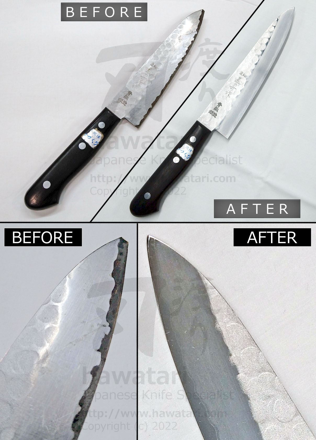 Check out photos below to see just a few of the many knives that hawatari repair service gave a new life to (pictures will open in a separate window).
