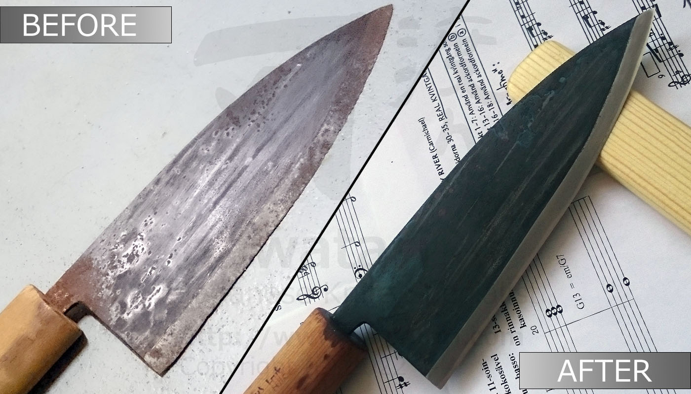 | Rust removal and kurouchi finish on a funayuki knife | link |
